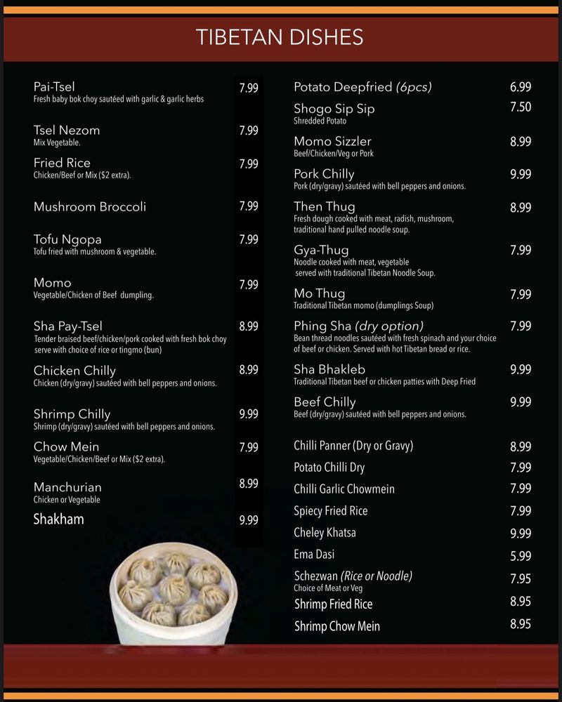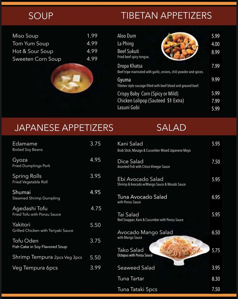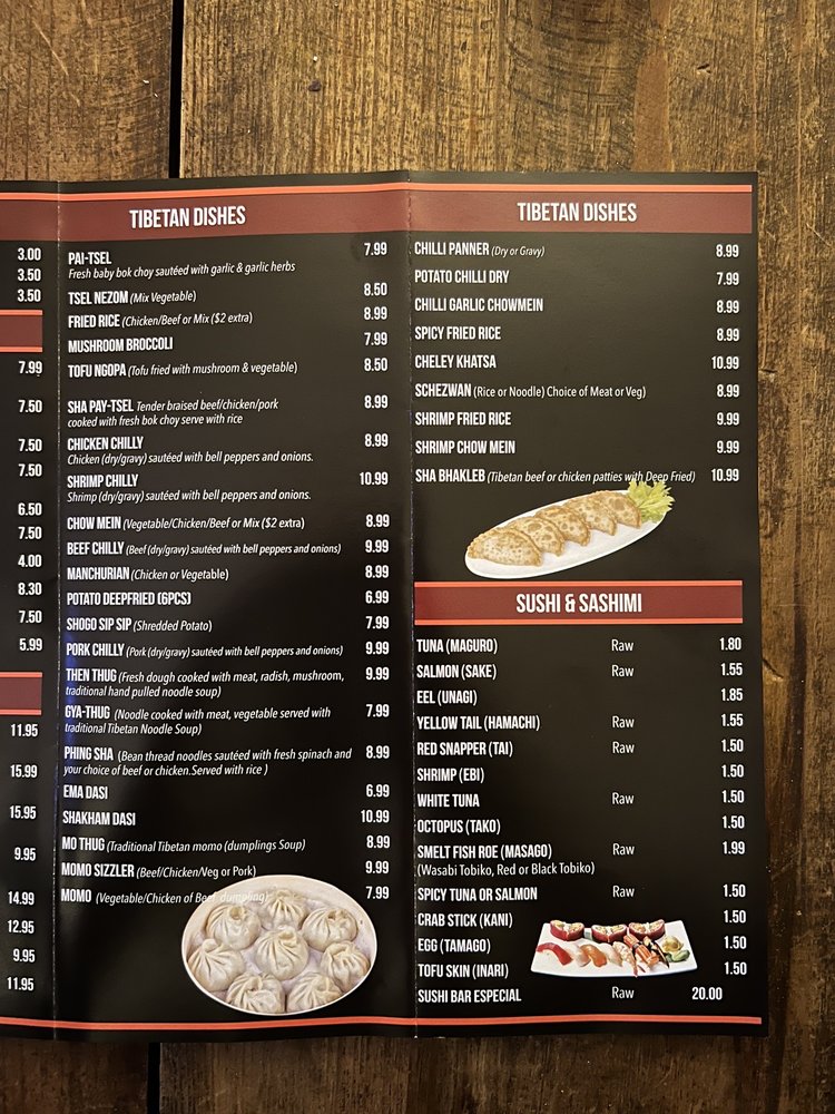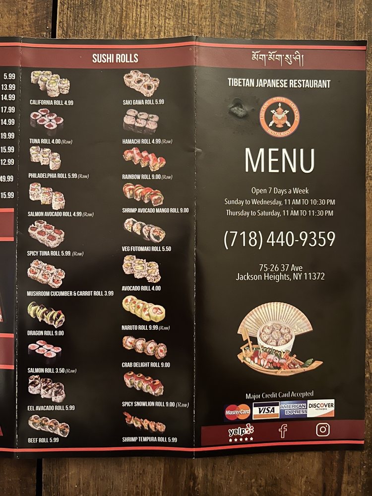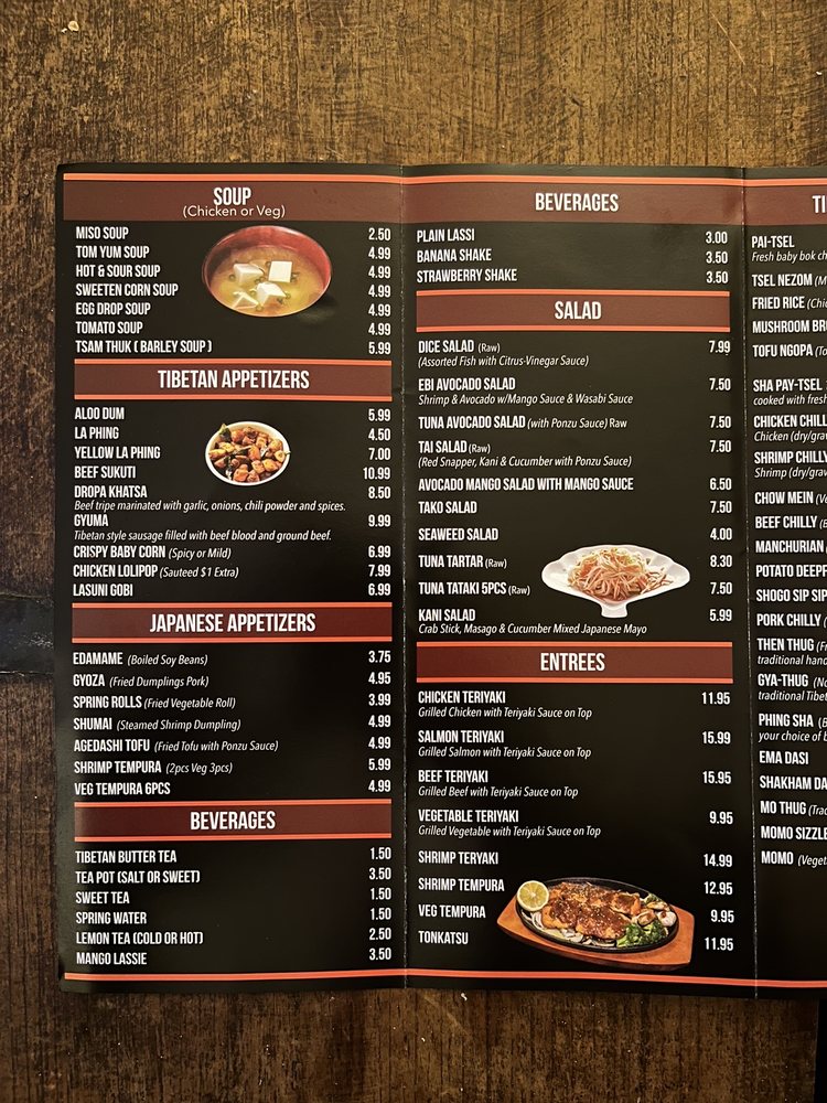 Tibetan Japanese Menu